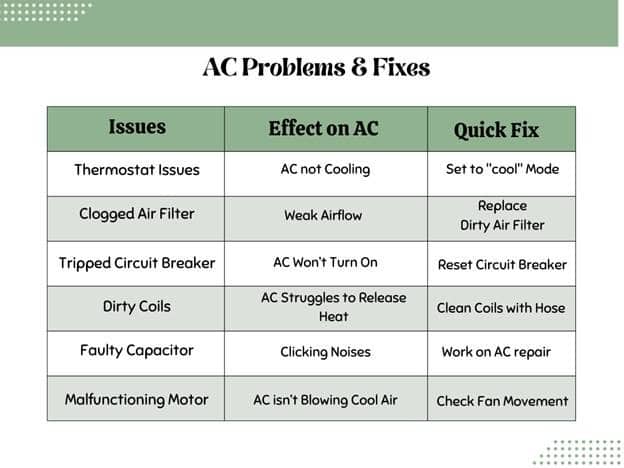 - Call an HVAC technician for AC repair if the fan is not working.